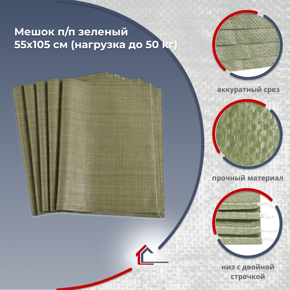 Мешок полипропиленовый зелёный 55×105 см — профессиональное решение для хранения и транспортировки сыпучих материалов на строительных, сельскохозяйственных и производственных объектах. Выдерживает нагрузку до 50 кг.