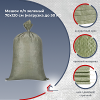 Мешок полипропиленовый зелёный 70×120 см — профессиональное решение для упаковки и транспортировки сыпучих материалов и отходов. Рассчитан на нагрузку до 50 кг.