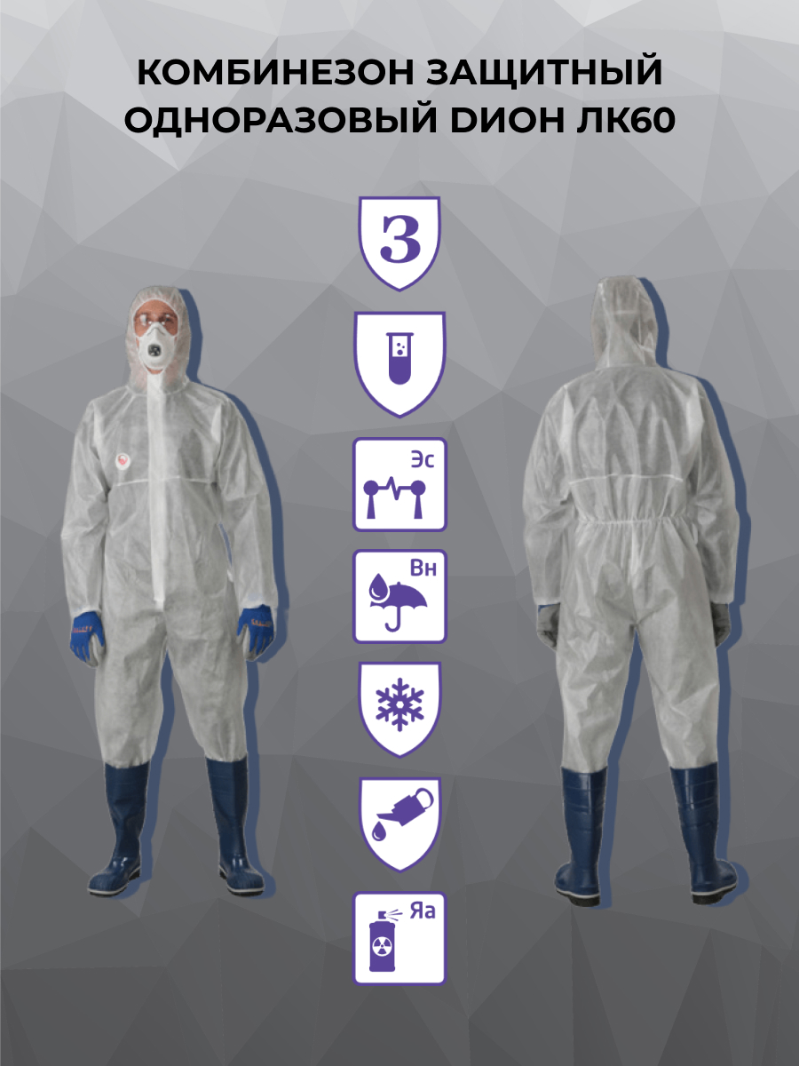 Комбинезон защитный одноразовый DИОН ЛК60 — это надежный выбор для вашей безопасности. Созданный для защиты основной спецодежды, он эффективно ограждает от мелкодисперсной пыли, жидкостей и жидких химикатов низкой концентрации. Его инновационная конструкция обеспечивает защиту от твердых аэрозолей, органических растворителей, смол и масел.