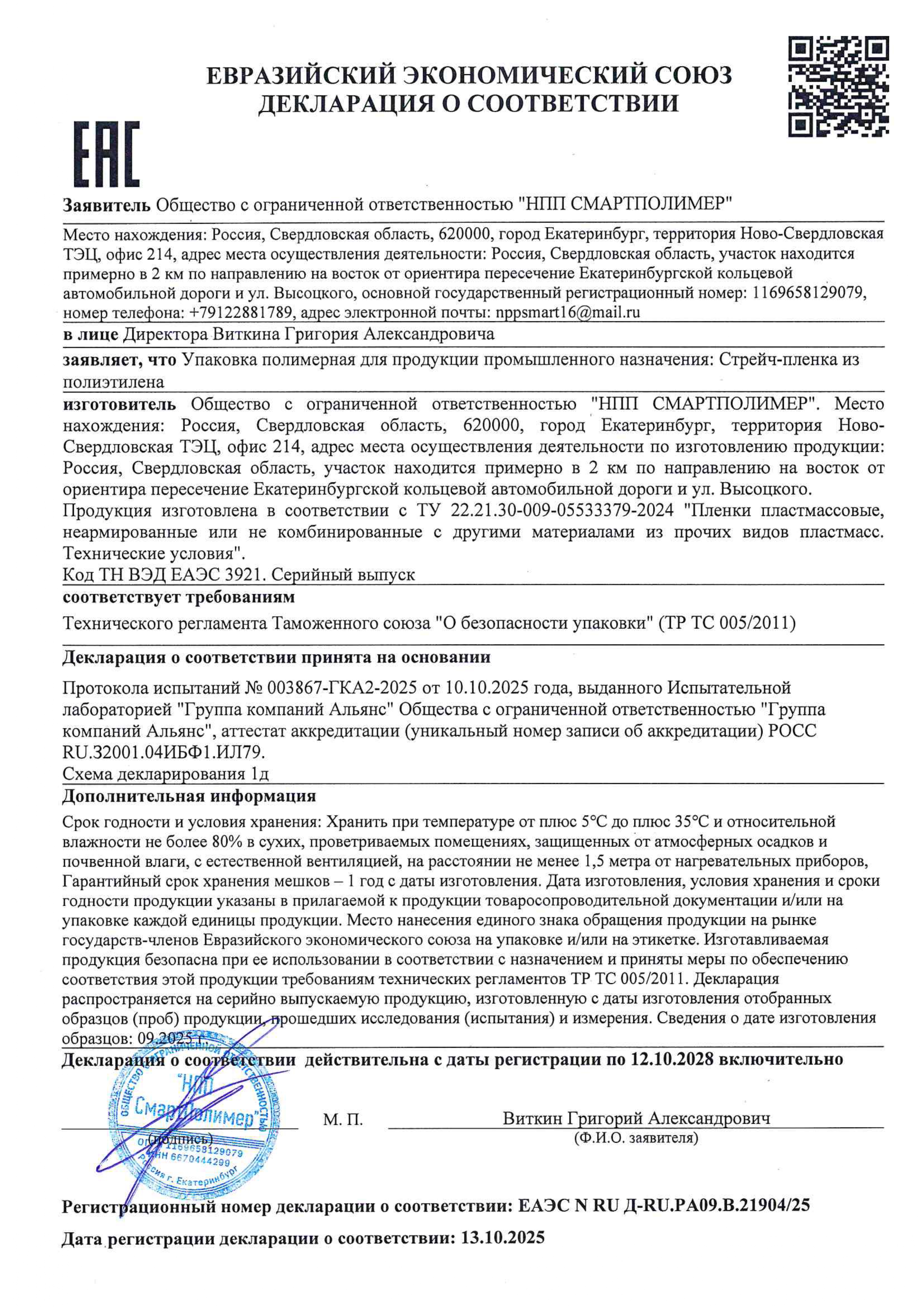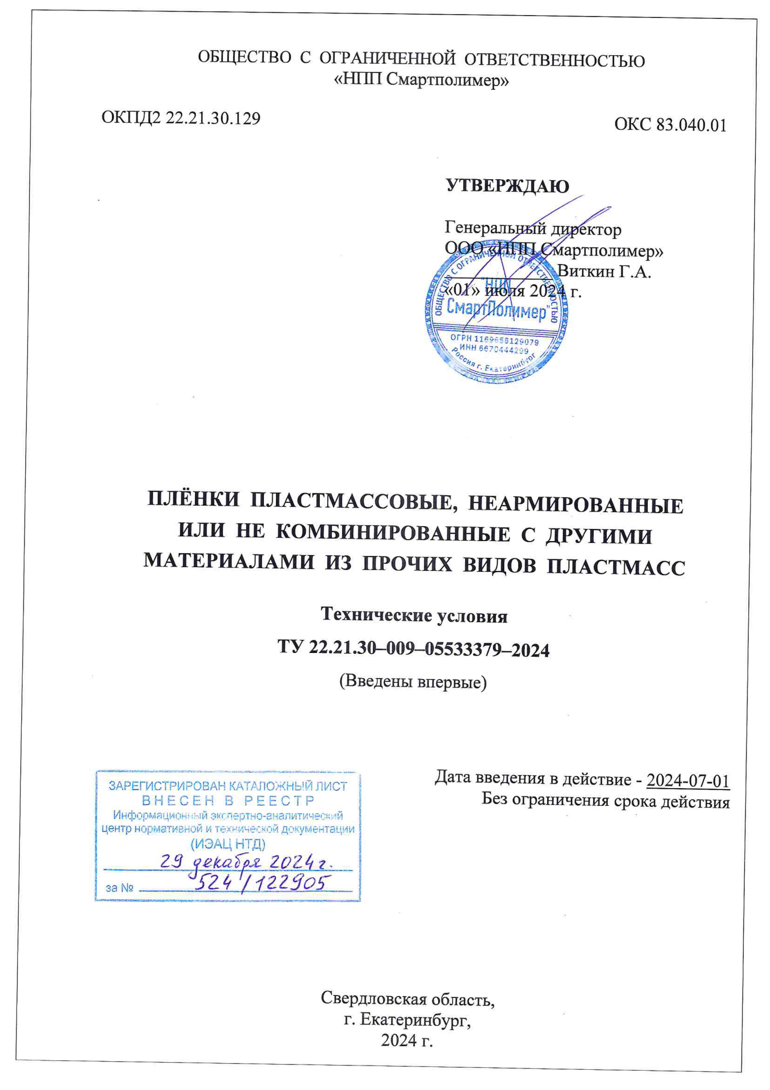 ТУ 22.21.30-009-05533379-2024 «Пленки пластмассовые, неармированные или не комбинированные с другими материалами из прочих видов пластмасс»