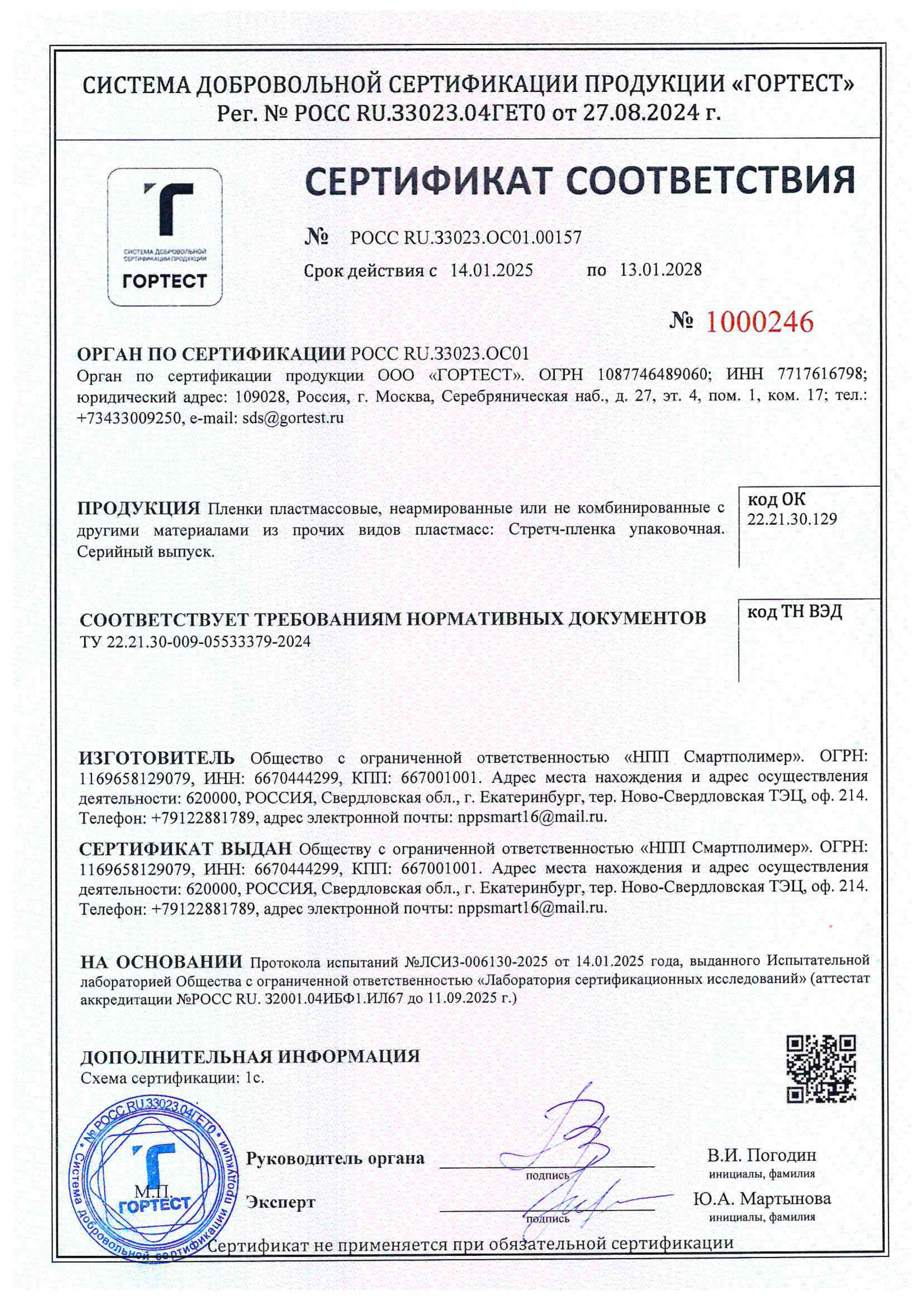 ТУ 22.21.30-009-05533379-2024 «Пленки пластмассовые, неармированные или не комбинированные с другими материалами из прочих видов пластмасс»